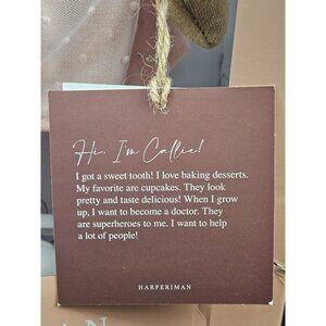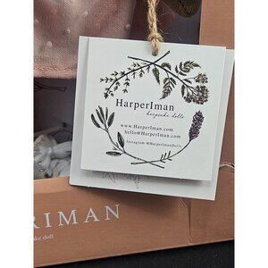 This 14-inch Harperiman Callie Keepsake Doll features exquisite craftsmanship and thoughtful design, celebrating diversity with graceful detailing. Handcrafted with soft fabric, Callie wears a delicate pink dress with a dotted mesh overlay, a matching headwrap detailed with colorful polka dots, and tied-on soft yarn curls. Safe for light imaginative play, the doll comes in its original gift box, perfect for collectors. Harperiman, a company focused on representation, celebrates self-expression, creativity, and identity through meaningful dolls. Note: packaging has minor damage while the doll remains untouched and in pristine condition.