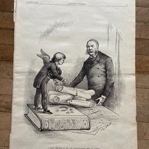 Harpers Weekly, Thomas Nast, Woodcut Engraving, Political Cartoon