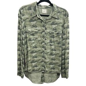 Harpers Women’s Green Camouflage Long Sleeve Button Down Top Size: M