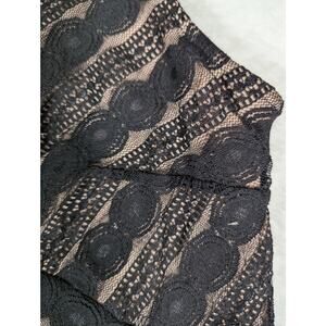 Harpers signature Black lace over flesh liner cocktail midi length dress Sz18 W