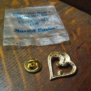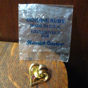Harriet Carter Vintage Gold Heart Brooch - Genuine Ruby Made in USA Lapel Pin