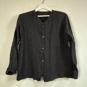 Harriet Selwyn Women's Long Sleeve V-Neck Casual Button Front Blouse Black Size?