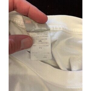 Previously worn with normal wash and wear. Small faint spot noted on back near text print. Graphics show light cracking but remain clearly visible.