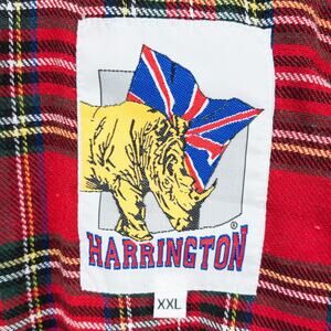 Harrington lined windbreaker jacket in Burgundy, tagged Men’s 2XL but fits closer to a Large—check measurements. Flannel-lined interior with classic red tartan offers midweight warmth and structure. Zip front, point collar, and button-flap pockets for a classic silhouette.