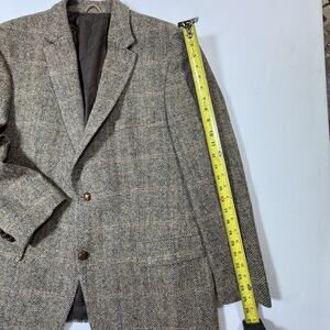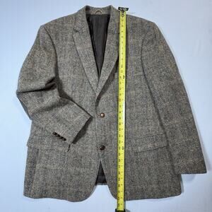 Harris Tweed Blazer Men 46R Brown Multi Woolen Square Herringbone Sport Jacket