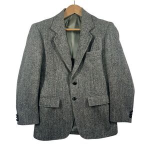 Harris Tweed Men’s 36 Sport Coat Blazer Gray Herringbone Handwoven Scottish Wool