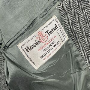 Harris Tweed Mens 36 Sport Coat Blazer Gray Herringbone Handwoven Scottish Wool. No size tag but mesurements suggest a size 36.