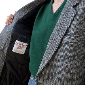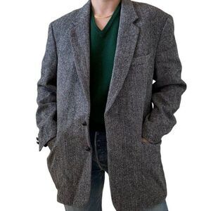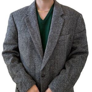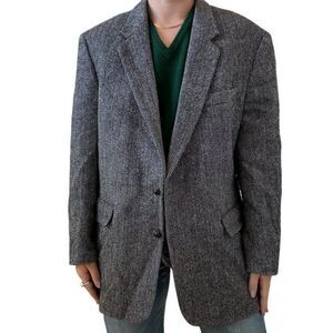 Harris Tweed Mens Black Chevron Wool Scottish Tweed Sport Coat Blazer 42R