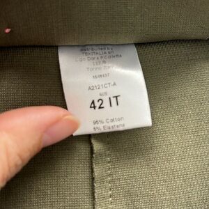 Beautiful olive green stretch blazer with raw edge hemline along bottom edge. Double buttons.