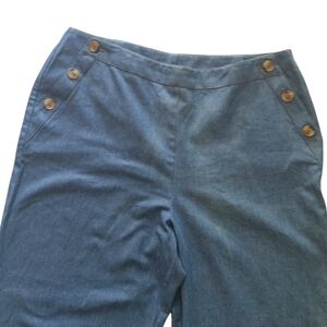 Harris/Wallace Womens Wide-Leg Pants Sailor Spring Blue Plus Size 16 Cotton NEW