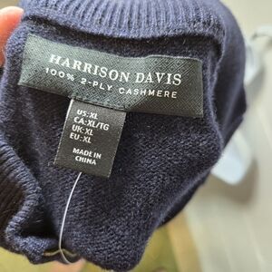 Harrison Davis 2 ply cashmere argyle blue 1/4 zip pullover sweater new