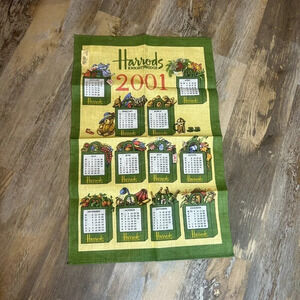 Harrods 100% Linen Calendar Tea Towel 2001 NWT