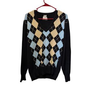 Harrods 100% Pure Cashmere Vneck Intarsia Argyle Sweater Size 44”
