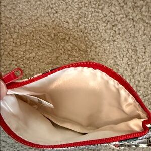 Charming coin pouch with a cityscape design. Includes keyring for convenience. Ideal for small items.