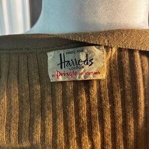 Harrods Cashmere Camel Ribbed V-Neck Button-Front Cardigan