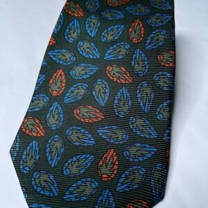 Harrods Knightbridge Silk Tie Green Stylized Leaf Like Pattern Blue Orange