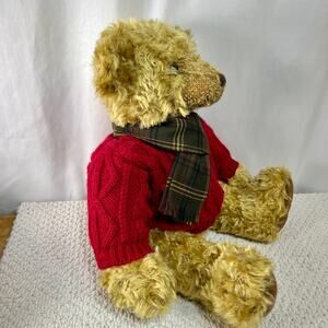 Harrods Knightsbridge 20th Ann Blond Teddy Bear Plush 2005 19" Red Sweater Scarf