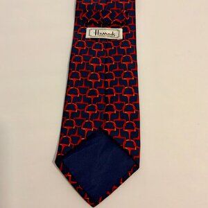 Harrods Knightsbridge Blue Red Geometric Print 3 Inch Silk Tie