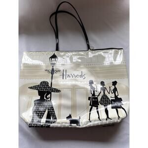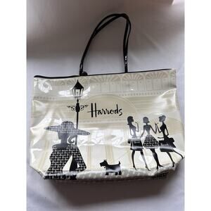 HARRODS KNIGHTSBRIDGE SHOPPING SHOULDER ZIPPERED TOTE BAG 18 IN X 12 IN