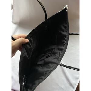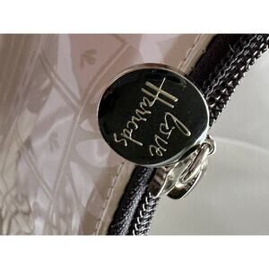 The Harrods Knightsbridge Shopping Shoulder Zippered Tote Bag is a stylish and practical accessory for women. This large tote bag features a rectangular shape with a zip closure and double black PVC handles for easy carrying. The exterior is made of beige and black PVC with a glossy finish and Harrods logo accents, adding a touch of designer flair. The bag is lined with black fabric, has inner pockets for organization, and is water resistant, making it suitable for travel and casual outings. With its vintage charm and classic London theme, this tote bag is a must-have for any fashion-forward woman.