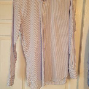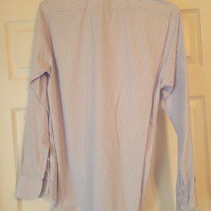 Harrods of London Mens Dress Shirt 15.5/39 Blue White striped Extra Fine Cotton
