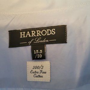 Harrods of London Mens Dress Shirt 15.5/39 Medium Blue 200/2 Extra Fine Cotton