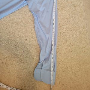 Please see pictures. I tried to get better measurements. Looks like just over 17 in across the back shoulders, and I would estimate the sleeve length at about 33/34. Cuffs do fit on the narrow side so it does not move over the wrist.