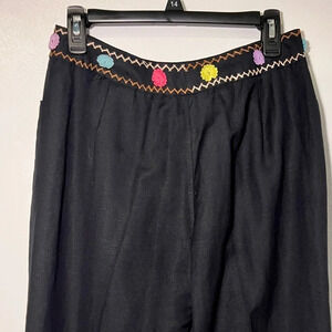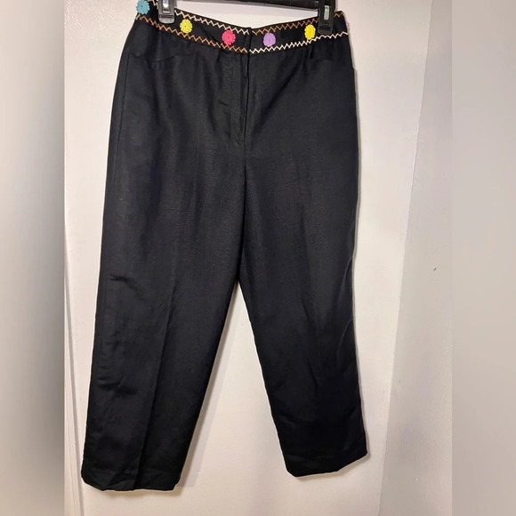 Harry Levine,spt,8, pocketed linen blend, floral, crochet embroidered accents waist, latch, zip, front closure, crop pants.