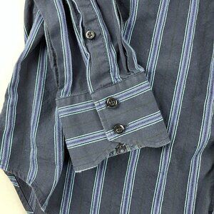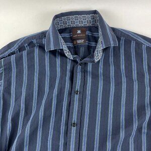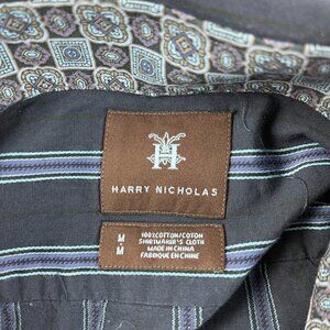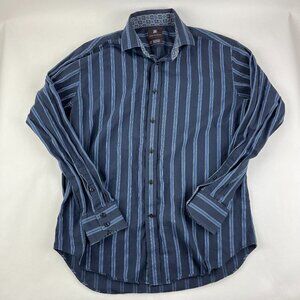 Harry Nicholas Button Up Dress Shirt Mens Medium Blue Striped Long Sleeve