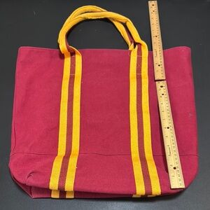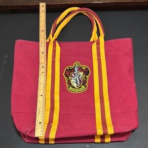 Harry Potter Canvas Bag. Gryffindor. From Universal Studios. Snap closure. Zip pocket inside with 2 smaller pockets. 16” tall, 17” wide, 5” bottom.