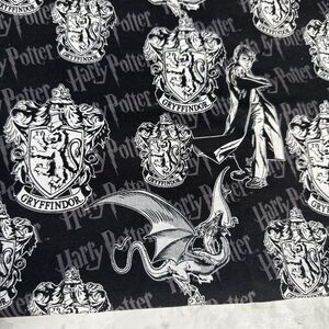 Harry Potter Cotton Fabric 52x41” Black & White Gryffindor House Crest