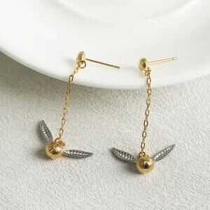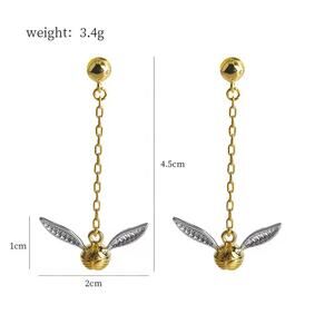 Harry Potter Dainty Winged Golden Snitch Dangling Earrings
