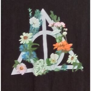 Pre-Owned/good Condition. This Harry Potter Deathly Hallows T-Shirt is a must-have for any fan. The shirt features a black crew neck with short sleeves and a regular fit, made from 100% cotton material. The shirt is machine washable and has a beautiful Deathly Hallows symbol with flowers on the front graphic. The shirt is available in size small, with a chest measurement of 21 inches and a length of 25 inches. It is perfect for any season, whether it be summer, fall or spring. This T-Shirt is an officially licensed product from the Wizarding World of Harry Potter and is manufactured in Guatemala.