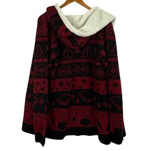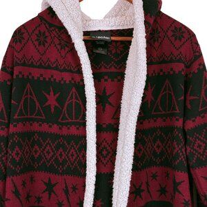 Harry Potter Deathly Hallows Hooded Fair Isle Open Cardigan Sweater Sz Large