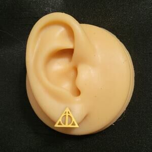 Harry Potter Deathly Hallows triangle earrings gold tone post earrings