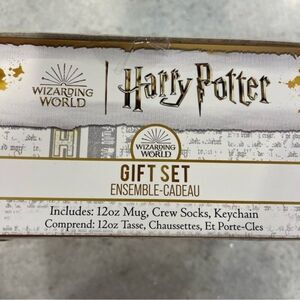 New in Box! Harry Potter Gift Set with Gryffindor Crew Socks (one size fits most), Hogwarts Mug & Hogwarts Keychain. By Culturefly. Perfect gift for Harry Potter fans! I have multiple quantities so reach out for availability if you’d like to bundle multiples.