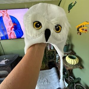 Harry Potter Griffindor Hedwig White Owl Plush Winter Hat with Ear Flaps OS