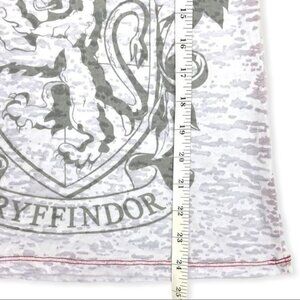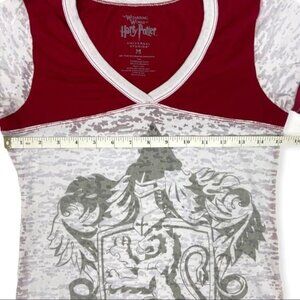 Short sleeve Harry Potter Gryffindor t-shirt from Universal Studios. Red with gray/white burnout fabric. V-neck. Size medium. Measurements when laid flat (approximate): bust 15”, length shoulder to hem 24.5”. Gently worn. No rips or tears. Smoke free pet free home.