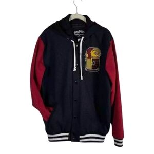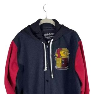 Harry Potter Gryffindor Logo Hooded Varsity red/ black Wool Jacket NWOT Sz L