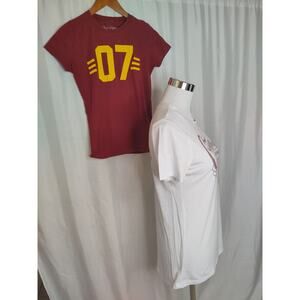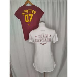 This listing is for the 2 Quidditch themed Harry Potter shirts pictured. One white graphic shirt that says "Gryffindor" on the front with "Team captain" on back and the other is a red graphic shirt with "07" on front and "H.Potter 07" on the back
