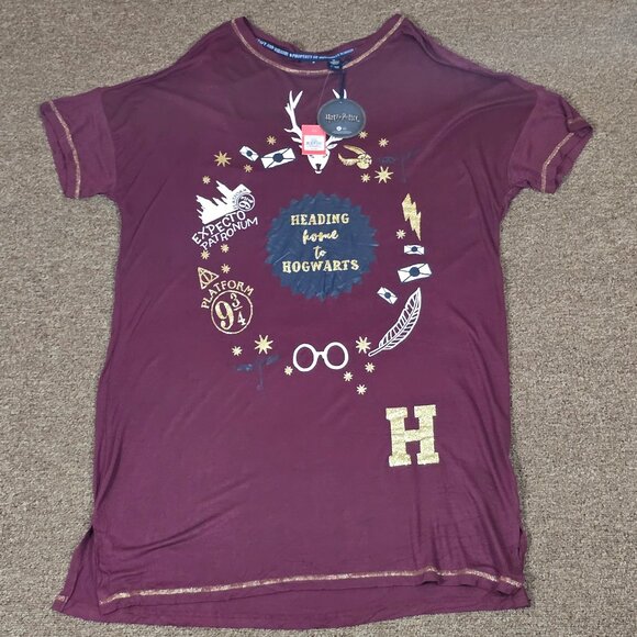 Harry Potter Heading Home to Hogwarts Nightie Night Dress Burgundy Sz Medium-NWT