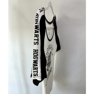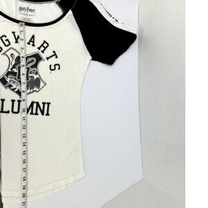 Brand new (no tags) Harry Potter Hogwarts Alumni raglan-style tee. Soft, stretchy fabric with black sleeves and “Hogwarts” printed along each arm. Classic Hogwarts crest on the front.