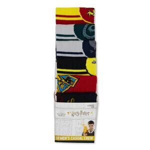 Harry Potter Hogwarts casual crew socks, 6 pairs each with a different design. Elastic cuff and reinforced toe. MEN'S SIZE 8-12, however they can be worn by women as well. Just keep in mind the men/women size conversion. These make a great gift. New, in original packaging.