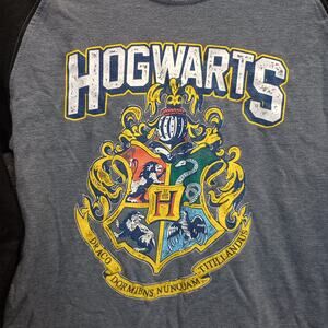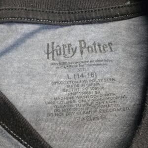 Keywords: Harry Potter, Hogwarts, Crest, Kids Shirt, Crewneck, Long Sleeve, Gray, Yellow, Size L, Pre-owned, Wizarding World, Movie Merchandise, School Uniform, Casual Wear, Children's Apparel.