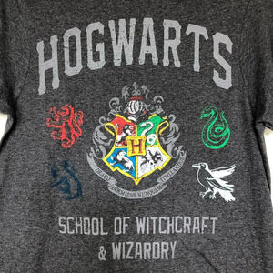 Harry Potter Hogwarts School Crest Short Sleeve Tee Gray size Small New