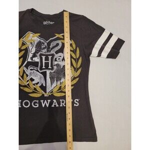 Harry Potter Hogwarts Tee Juniors Large 11/13 Glitter House Crest Gold Gray