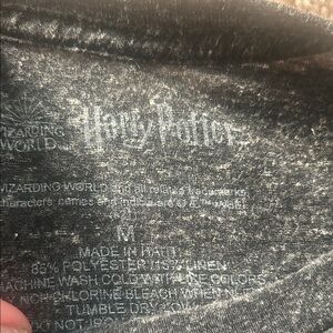 Dark gray Hogwarts graphic t-shirt with emblem design.