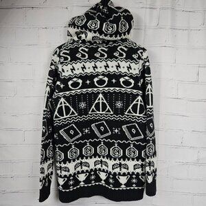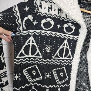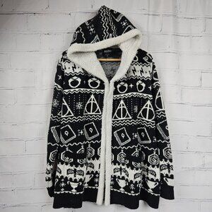 Harry Potter Hooded Sherpa Trim Knit Open Cardigan Sweater Womens L Duster Long