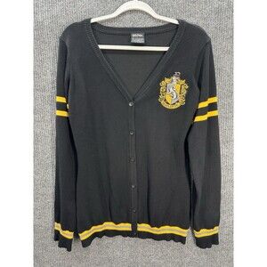 Harry Potter Hufflepuff Cardigan Womens Large Black Sweater Academia Cosplay