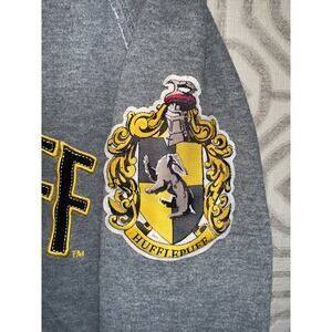 Harry Potter Hufflepuff Crew Sweatshirt size M Add some magic to your wardrobe with this unisex Hufflepuff Crew Sweatshirt. The light grey sweatshirt features a bright yellow and black design of the word ‘Hufflepuff’ across the center of the chest. 21” length 25” sleeves 26” good condition